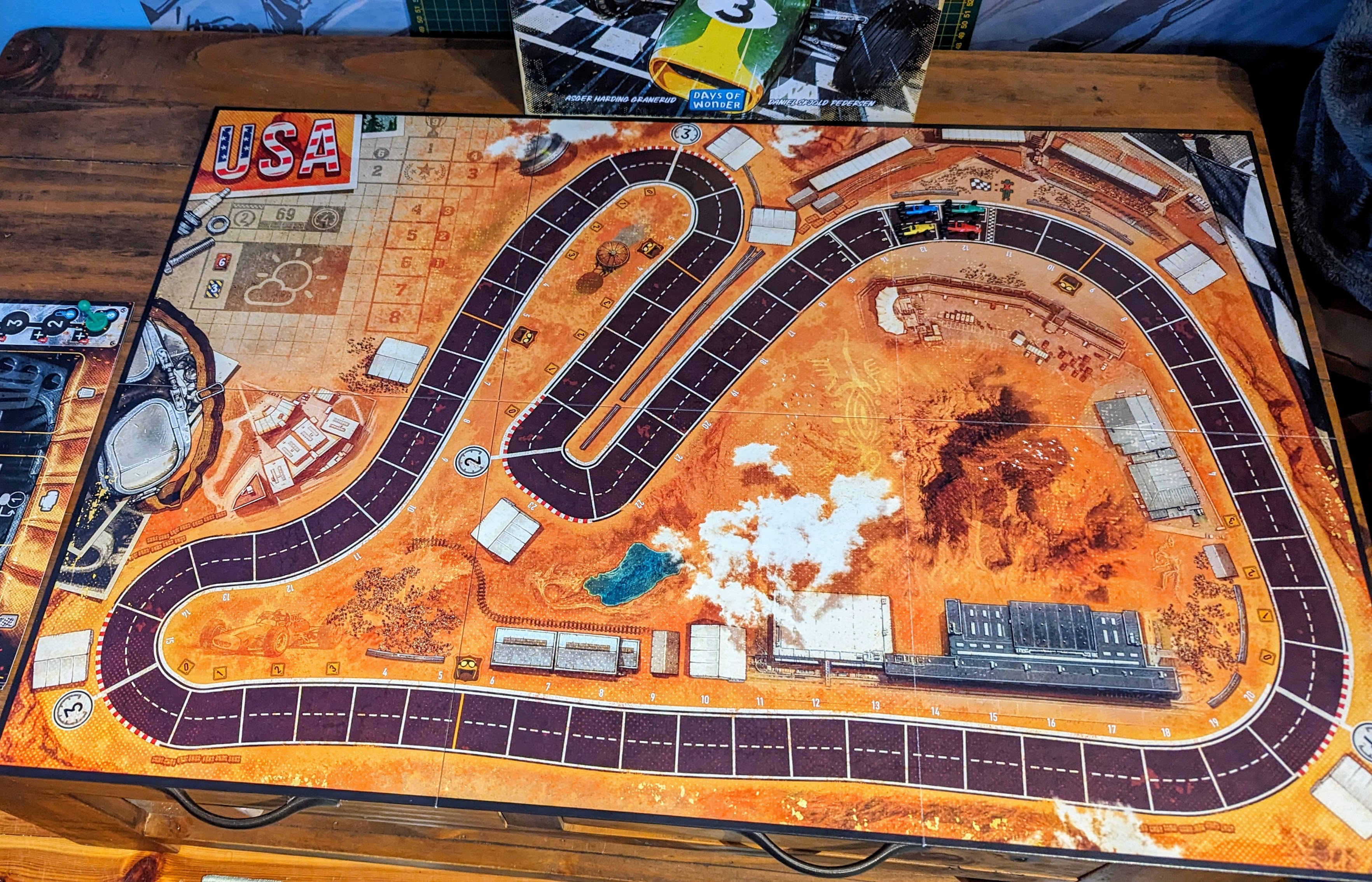 And that fans tuning in across the world, is Heat: Pedal to the Metal in a nutshell. The game, played out on one of four massive and lovely racetrack boards, does an excellent job of recreating the excitement of a close Formula 1 race (even if such a thing doesn’t happen often in real life).